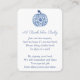 This insert card design features a blue and white pumpkin with a "chinese" ginger jar style pattern. The same pattern is on the reverse of the card at a larger scale. Shown here as a "book request" baby shower enclosure card but all of the text can be customized to your event needs.