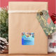 This is a customizable Christmas sticker that adds a festive touch to your holiday greetings. It features a gradient blue background with a bokeh effect, adorned with three shiny metallic Christmas ornaments in gold, blue and pink. Each ornament is decorated with snowflakes, adding to the holiday spirit. The sticker also showcases a string of colourful Christmas lights, enhancing the festive mood. The text "Merry Christmas", is customizable, allowing you to add your own family name or message. This sticker is perfect for adding a personal and festive touch to your Christmas gifts or cards.