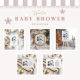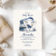 Celebrate a winter baby shower with this adorable design featuring a hand-painted baby elephant in a Santa hat, surrounded by folded blankets and festive blue ornaments. The soft watercolor textures and cool navy tones create a cozy, magical atmosphere—perfect for welcoming a baby boy during the holiday season.
