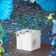 Package gift favours this holiday season with a Blue Christmas Gift Favour Box. Favour box design features a vibrant wrapped Christmas gift adorned with grey and white snowflakes against a grey grunge background. Additional gift and holiday items available with this design as well.