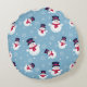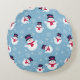 Blue Christmas Pattern With Snowmen And Snowflakes Round Pillow