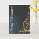 The Christmas card features an elegant golden Christmas tree made of sparkling stars on a dark blue background. The lettering "Merry Christmas" in golden, curved lettering stylishly rounds off the festive design. 🎄✨