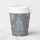 Sip your favourite Christmas time beverages with a festive set of Blue Christmas Tree and Snowflakes Paper Cups. Paper cup design features a vibrant artistic Christmas tree with falling snowflakes and a dark grey background. Additional gift and holiday items available with this design as well.