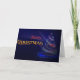 A colourful Christmas card featuring a blue Christmas tree on the front and stars, with a Merry Christmas greeting in red and gold. (Designer notes: the inside of the card features the message, Seasons Greetings, which can be customized with any greeting you wish - or removed altogether - by editing the text in the text customization box above.