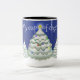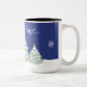 Enjoy your morning coffee during the holiday season with this festive Blue Christmas Tree Coffee Mug. Coffee mug design features a trio of decorated Christmas Trees in snow with falling snowflakes against a blue background with the saying "My cup of cheer". Additional gift and holiday items available with this design as well.