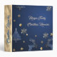 Elegant blue Christmas tree, gold snowflakes, and reindeers . Keep your holiday memories, photos, recipes, and more in this classic looking 3 ring binder