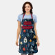 Blue Christmas with Winter Houses and Ornaments Apron
