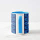 Loads of blue colours in this circular pattern! Customizable with a name in white that stands out from the blue.