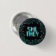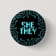 Blue Circuit Board She/They Pronouns 1 Inch Round Button