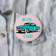 This funny button is a great gift idea for friends and loved ones with a sense of humour about their age! Design features a light pink background. There is a drawing of a turquoise blue coloured classic car. Above and below the class car graphic is text in the same blue font that says Not old...CLASSIC!, however this text can be changed to whatever you wish. This button is a fun way to joke about someones age! A great birthday gag gift!