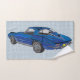 Blue Classic Corvette Design Bath Towel Set with customizable background colour to match your bathroom decor.