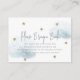 This elegant please baby shower bring a book/books for baby/book request card features fluffy light blue clouds and faux gold stars on a white background. The reverse side features a white background with geometric patterns in light blue. Personalize for your needs. You can find more matching products at my store.