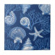 Ceramic Tile - Elegant blue and white coastal toile pattern with detailed coral, seashells, and starfish illustrations. Ideal for beach lovers, coastal decor fans, and those who enjoy classic ocean-inspired designs.