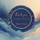 Elevate your coastal celebration with our customizable round sticker, a perfect addition to your special day. Inspired by the soothing blue hues of the ocean and the serene coastal vibes, this thank you label sets the tone for an unforgettable experience. Adorned with elegant seashells and marine animal motifs, along with vibrant generative artwork inspired by the coast, it adds a touch of sophistication to any packaging. Personalize with your monogram or name and wedding thank you text for a truly unique touch.