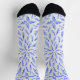 The design features a pair of women's socks with a vibrant blue bird feather pattern. The socks are made of a soft, comfortable material and are perfect for everyday wear. The blue bird feather pattern is eye-catching and adds a touch of whimsy to the socks.