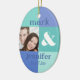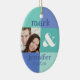 Fun ornament with a modern blue colour block design. Add your own photo and customize the text with the bride and groom's names and wedding date or whatever you like. Perfect keepsake for a newlywed's first Christmas. PinkInkArt original!
