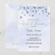 Bridal shower invitation with blue confetti design and light blue watercolor background.