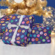 Playful and vibrant wrapping paper featuring colorful hand-painted dots scattered across a deep navy background. Each ring-shaped dot glows with cheerful shades of coral, turquoise, lime, violet, and sunny yellow, creating a lively, modern confetti effect. Perfect for birthdays, celebrations, or adding a pop of artistic charm to any gift.