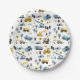 Blue Construction Trucks & Site Theme Pattern Paper Plate