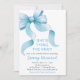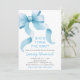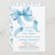 This cute and whimsical bridal shower invitation features a watercolor blue coquette bow. The text combines handwritten script and serif fonts for a stylish and modern look.
