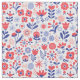 This folk art design features a bright blue and coral floral pattern.