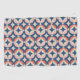 This mid-century modern design features a blue and coral geometric pattern.