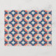 This mid-century modern design features a blue and coral geometric pattern.