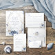 Personalized recipe card features dusty blue watercolor coral & seashells, stylish script and classy font details, modern and romantic, Great for summer beach bridal shower, or tropical destination wedding, and coastal ocean themed party.