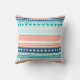 Chic and modern teal turquoise aqua blue, peach orange pink, grey, navy blue and white tribal pattern custom monogram decorative throw pillow. Fully customizable, add your own initial for a truly unique home decor item.