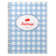 Country charm, sweet fruit and cuteness all rolled into one! This personalized journal features an gingham pattern background with your name or custom text set within a beaded oval frame. Your name is topped with cherries of course. Use this spiral notebook as a personal diary, a reflection journal, a doodle pad, a composition book or a project planner.