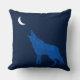 Blue Coyote Howling at the Moon Monogram Two Sided Throw Pillow