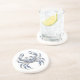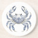 This sandstone coaster is shown with a lovely floral print blue crab art print.