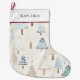 Blue Cream Christmas Trees burgundy stripe Large Christmas Stocking