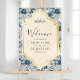Blue Cream Floral Gold Muslim Wedding Welcome Acrylic Sign