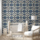 Blue Cream Italian Tile Wallpaper