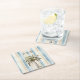 Blue Cream Stripes Tropical Palm Tree Square Paper Coaster