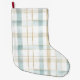 Blue Cream White Plaid Christmas Large Christmas Stocking