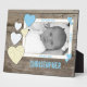 Personalize this plaque with a photo of your baby boy. Phrases used, decorating the frame are, 'Our baby boy,' 'So cute,' and 'We love you.' All can be changed if you prefer. Also add his name.