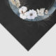 Tissue paper with a mystical illustration. A dark blue crescent moon with a elegant thin circle outline and white flower blossoms along its edges.