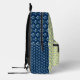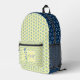 A backpack with blue crocuses and bluebells flowers. The images, background and text can be personalized. Original artwork by W.B.