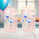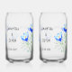 Can glasses with beautiful images of blue crocus flowers. The images, background and text can be personalized. Original artwork by W.B.