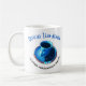 This mug is great for any coffee lover. It features my digitally altered close-up photograph of a coffee filled blue cup and saucer with coffee beans. The arched blue text above the photograph reads "Official Team Member". The bowed black text below the cup and saucer photograph reads "Coffee Consumption Squad". Fill in the template fields to change the text on both sides or click customize to select a typeface style, size, and colour you like.