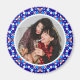 Merry and Festive Blue Christmas Photo Picture Frame Round Gift Magnet for family and friends. A colourful and bright circular ornament for your winter and icy blue themed decorations. The frame design is a jolly geometrical abstraction pattern take on traditional colour block festive designs. In winter colours of ice blue and snow white, with hints of dark reddish brown. Personalise it by replacing the photo with your own, for an early gift for family and friends, to celebrate Christmas. Cherish your Yuletide memories of a Winter Wonderland. A great way to decorate the kitchen fridge and home office magnetic notice board for best friends and brothers and sisters, or couples. A budget friendly family keepsake for celebrations.