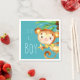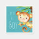 Blue Cute Monkey Baby Boy Announcement Napkin