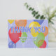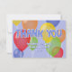 This fun and colourful birthday thank you card features the message "thank you" spelled out in realistic, whimsically arranged blue frosted cutout cookies surrounded by multicolor balloons - the image of two balloon shaped cutout cookies accents the back of the card - personalize with your message on the front - background is customizable light blue - by katz_d_zynes