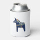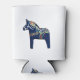 The design on this can cooler is from a wooden horse designed, carved and painted by Julia Morrill