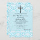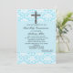 Start your celebration off with this elegant yet dainty invitation for that special boys Holy Communion. It has a blue damask on the top and the bottom of the invite. On the top in the centre there is a black and white damask cross. Check out the many other items in this line such as labels, postage, thank you notes, and more.