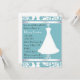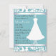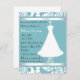 Pretty bridal shower invitation done in aquamarine and white, with a lovely wedding dress on a decorative stand. Customize the text to suit your party needs.