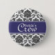 Blue Damask Bride's Crew Button