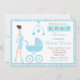 Blue Damask Brunette Expecting Boy Baby Shower Invitation